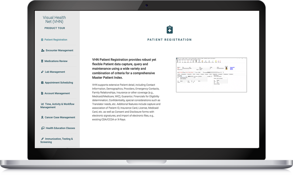 VHN is a secure Web-hosted, highly-configurable, HIPAA-compliant EHR solution built specifically for public health.